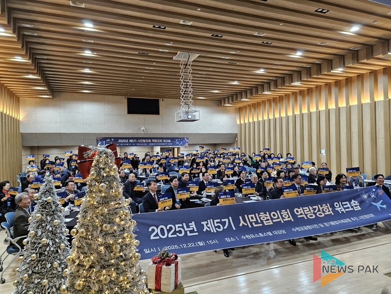 수원군공항이전 및 경기통합국제공항 추진 시민협의회(이하 시민협의회)는 지난 22일 수원 유스호스텔 대강당에서 ‘제5기 시민협의회 워크숍’을 개최하고, 군공항 이전의 조속한 추진을 위한 결의를 다졌다.