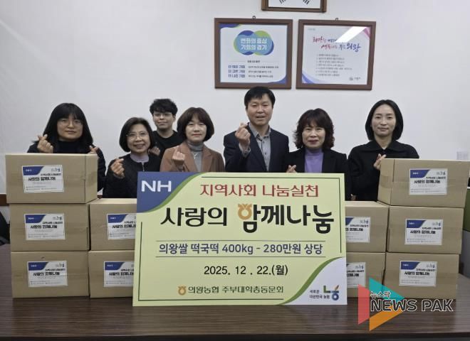 최석우 부곡동장은“연말마다 잊지 않고 이웃을 위한 나눔을 실천해 주시는 의왕농협주부대학총동문회 회원들께 깊이 감사드린다”며, “후원해 주신 떡국떡을 돌봄이 필요한 이웃들에게 정성과 마음을 담아 잘 전달하겠다”고 전했다.