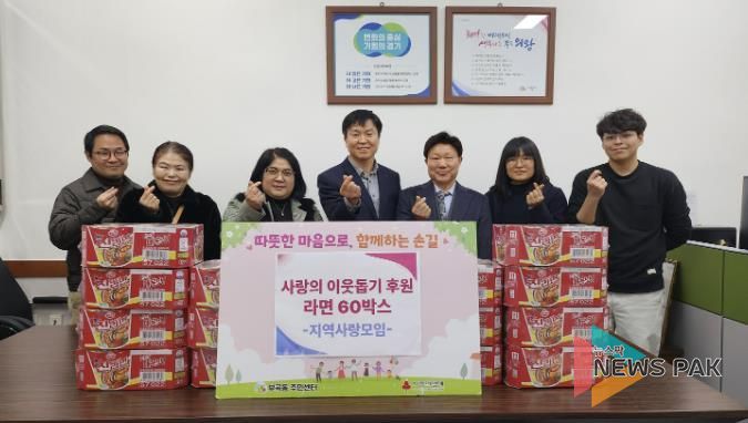 지역사랑모임은 지역 내 소외된 이웃을 위해 꾸준히 봉사하고 있으며, 작년에도 쌀을 후원하는 등 매년 지역사회를 위한 나눔 활동을 이어오고 있다. 이날 전달된 컵라면은 복지 사각지대에 놓인 저소득 취약계층 60가구에 지원될 예정이다.