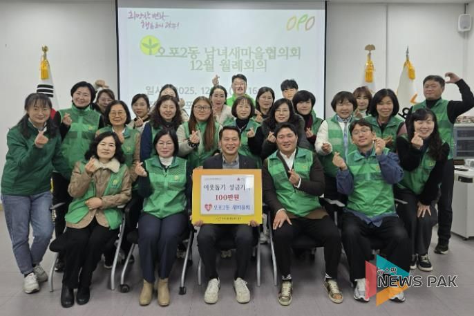 이에 대해 박종덕 동장은 “지역사회를 위해 따뜻한 나눔을 실천해 주신 오포2동 새마을회에 감사드린다”며 “기탁된 성금은 지역 내 취약계층을 위해 투명하고 소중하게 사용하겠다”고 밝혔다.