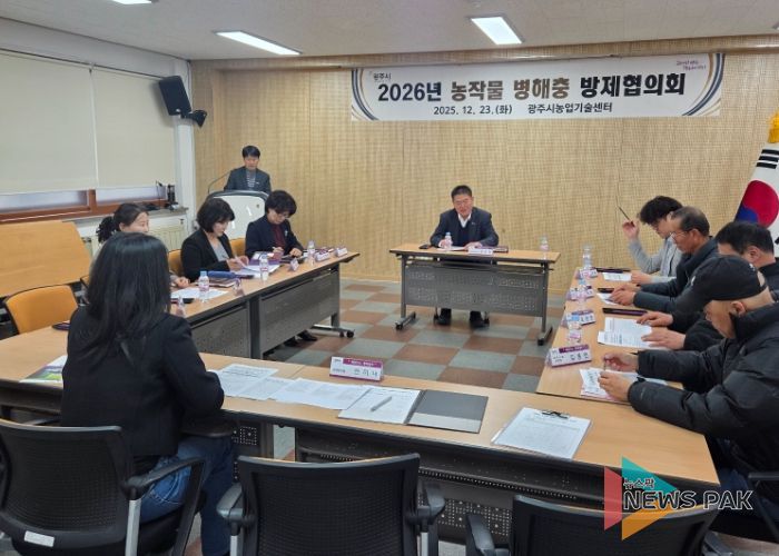 뉴스팍 이화형 기자 | 광주시농업기술센터는 23일 행정기관, 농협, 농업인 단체 대표 등 관계자 11명이 참석한 가운데 농작물 병해충 방제협의회를 개최했다.