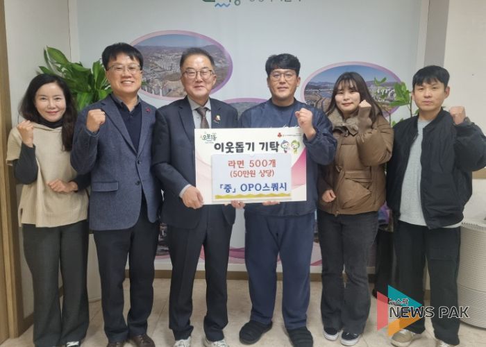 뉴스팍 이화형 기자 | OPO스쿼시 강인석 대표는 23일 어려운 이웃에게 전달해 달라며 광주시 오포1동에 라면 500개(50만 원 상당)를 기탁했다.
