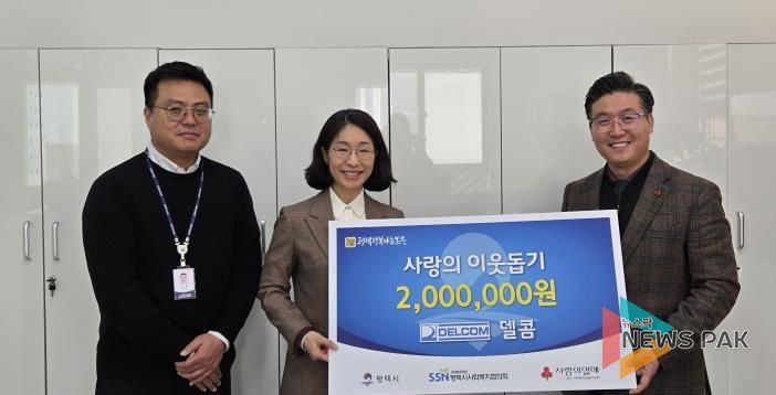 뉴스팍 이소율 기자 | 델콤이 지난 19일 평택행복나눔본부를 방문해 평택시 아동복지시설을 위해 200만 원의 성금을 전달했다.