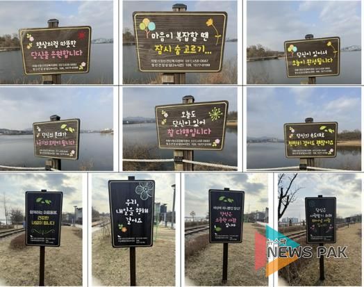 의왕시 보건소, 백운호수 및 왕송호수 생태탐방로에 자살예방 위한 '로고젝터·우드사인' 설치