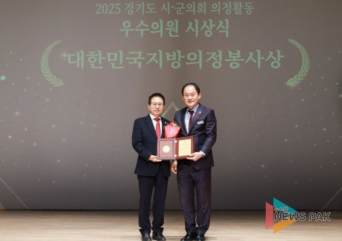 뉴스팍 이화형 기자 | 광주시의회 허경행 의장은 지난 24일, 동두천시의회에서 열린 제9대 후반기 대한민국지방의정봉사상 시상식에서 대한민국지방의정봉사상을 수상했다. ‘대한민국지방의정봉사상’은 대한민국시군자치구의회의장협의회가 주관하며 시군구 기초의회별 각 1명에게만 수여한다.