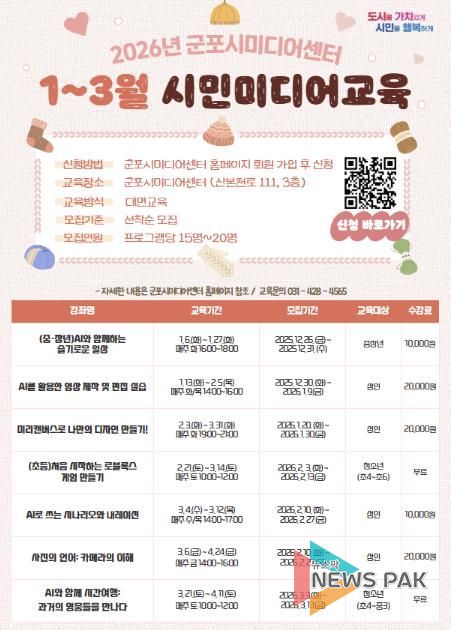 뉴스팍 배상미 기자 | 군포시미디어센터는 시민들의 미디어 활용 역량 강화를 위해 2026년 1분기 미디어교육 프로그램 수강생을 모집한다.