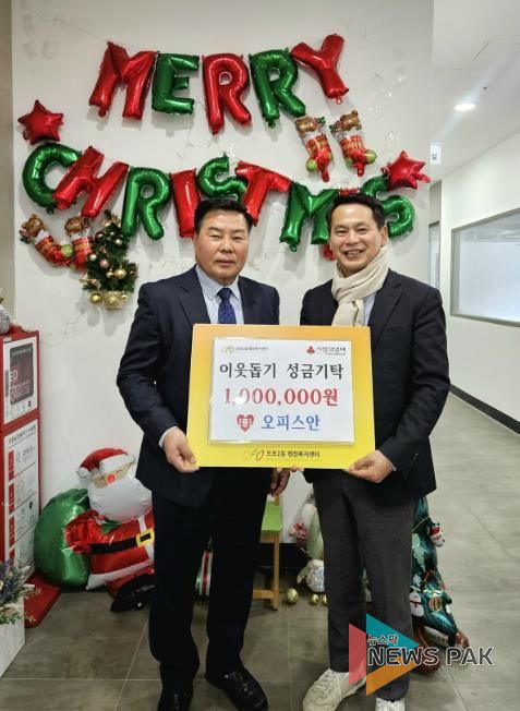 뉴스팍 이화형 기자 | 광주시 매산동에 소재한 오피스안의 안겸제 대표는 지난 24일 오포2동 행정복지센터를 방문해 지역 내 어려운 이웃을 위해 사용해달라며 성금 100만 원을 기탁했다.