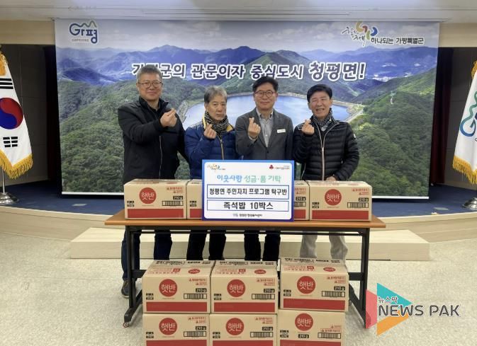뉴스팍 배상미 기자 | 가평군 청평면 주민자치 프로그램 탁구반 회원들은 최근 청평면 행정복지센터를 방문해 소외된 이웃들이 따뜻한 겨울을 보내길 바라는 마음으로 즉석밥 10박스를 기탁했다.