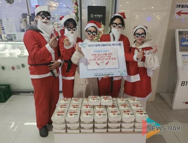 뉴스팍 배상미 기자 | 케이크 전문점 ‘새겨담다’는 지난 24일, 아동·청소년이 있는 가구를 위한 성탄절 기념 케이크 65개를 직접 제작해 고양시일산종합사회복지관에 전달했다.