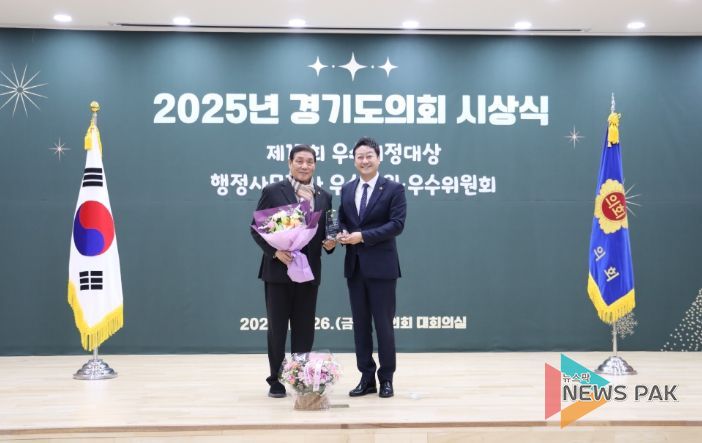 뉴스팍 배상미 기자 | 경기도의회 김규창 부의장(국민의힘, 여주2)이 대한민국시도의회의장협의회가 주관하는 ‘제17회 우수의정대상’ 수상자로 선정됐다. 이번 수상은 도민 삶의 질 향상과 지방자치 발전을 위해 현장에서 성과 중심의 의정활동을 펼친 공로를 인정받은 결과다. 이번 수상은 김 부의장이 보여준 현장 중심 의정활동과 합리적 대안 제시가 도내는 물론 전국 단위에서 높은 평가를 받았다는 의미를 지닌다.