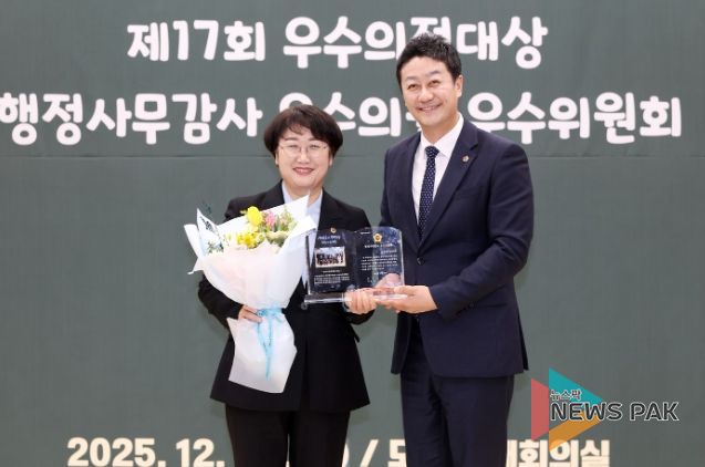 뉴스팍 배상미 기자 | 경기도의회 경제노동위원회 고은정 위원장(더불어민주당, 고양10)은 26일 경기도의회에서 열린 ‘2025년 경기도의회 시상식’에서 대한민국시도의회의장협의회가 주관하는 ‘제17회 우수의정대상’을 수상했다.