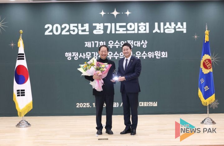 뉴스팍 배상미 기자 | 경기도의회 문화체육관광위원회 윤재영 의원은 12월 26일 경기도의회 대회의실에서 열린 대한민국시도의회의장협의회 제17회 ‘우수의정대상’ 시상식에서 우수의정대상을 수상했다.
