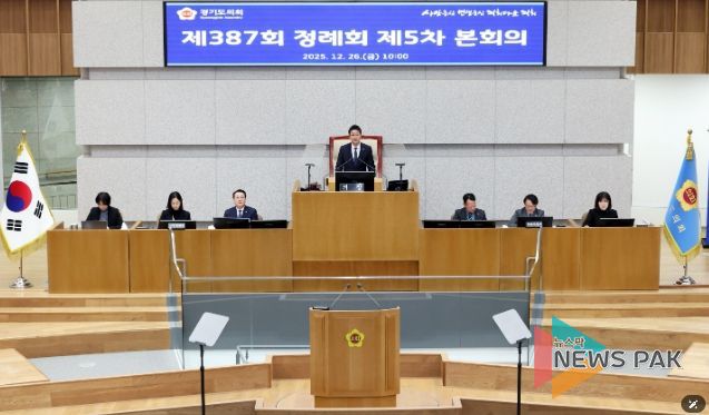 경기도의회는 이날 제387회 정례회 5차 본회의를 열고 2026년도 새해 예산안을 의결하며 회기 일정을 끝마쳤다.