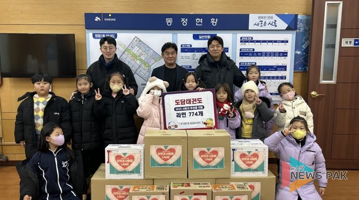 뉴스팍 배상미 기자 | 도담태권도는 지난 26일, 정왕1동 행정복지센터에 방문해 정왕1동 저소득 가구를 위한 라면 774개를 전달했다.