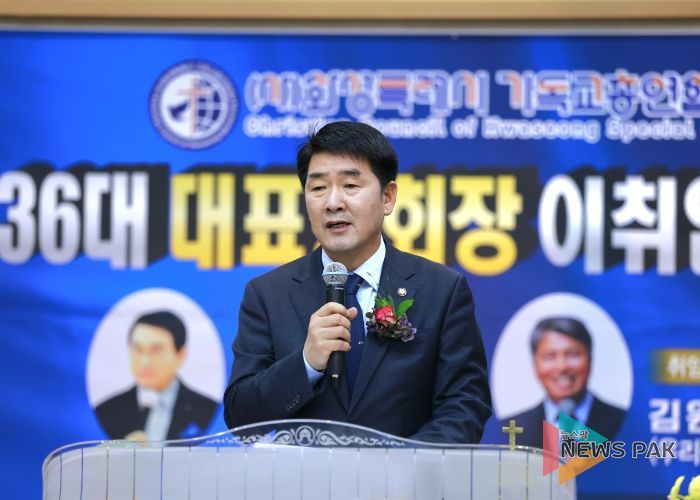 뉴스팍 류은정 기자 | 화성특례시의회는 29일, 우리꿈교회에서 열린 ‘화성특례시기독교총연합회 제36대 대표회장 김원정 목사 취임식’에 참석해 취임을 축하하고, 지역사회를 위한 신앙 공동체의 헌신에 깊은 감사의 뜻을 전했다.