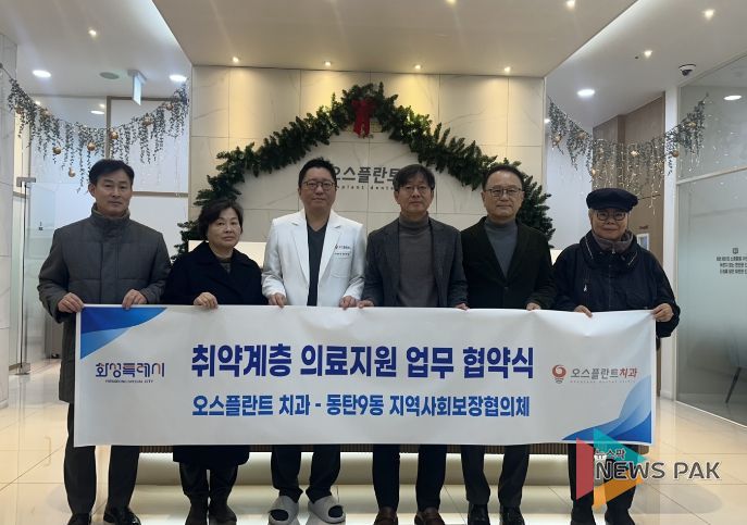 뉴스팍 류은정 기자 | 화성특례시는 30일 동탄9동 지역사회보장협의체와 오스플란트치과가 ‘취약계층 청소년 구강건강 지원을 위한 업무협약’을 체결했다고 밝혔다.