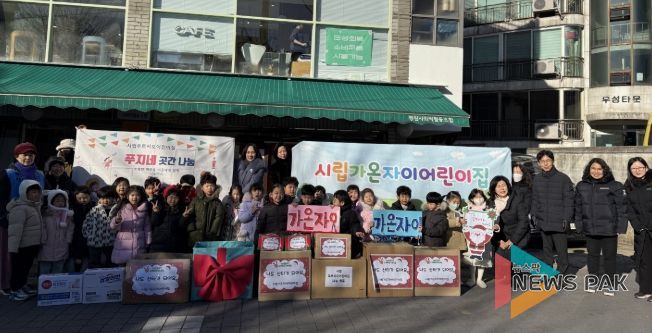 이날 시립푸르지오 어린이집과 시립가온자이 어린이집 원생 및 교사 30여 명은 직접 마련한 과자, 라면, 생필품 등을 소이곳간에 전달하며 나눔의 가치를 실천했다.