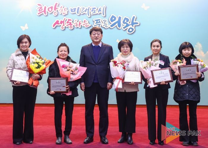뉴스팍 배상미 기자 | 의왕시가 12월 31일 시청 대회의실에서 열린 종무식에서 자원순환가게를 성실하게 운영한 참여 단체 활동가에게 모범 자원순환 실천 유공 표창패를 수여했다.