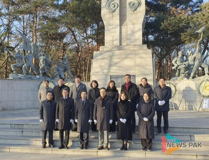 뉴스팍 배상미 기자 | 병오년 새해를 맞아 안양과천교육지원청은 2일 경기도교육청과 함께 안양시 현충탑(안양5동 소재)을 찾아 국화를 헌화하고 참배하며 새해 업무의 시작을 알렸다.