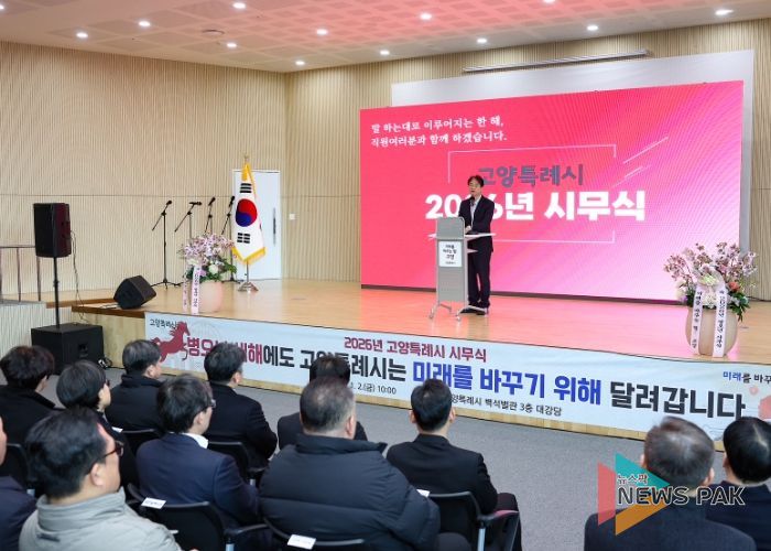 뉴스팍 배상미 기자 | 고양특례시는 2일, 고양시청 백석별관 대강당에서 새해 시무식을 열고 2026년 병오년의 힘찬 출발을 다짐했다.