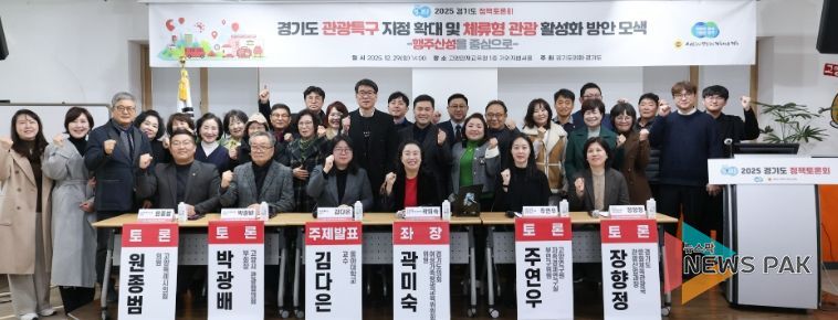 뉴스팍 배상미 기자 | 경기도의회 여성가족평생교육위원회 곽미숙 위원(국민의힘, 고양6)은 12월 29일 고양인재교육원 가와지볍씨홀에서 「경기도 관광특구 지정 확대 및 체류형 관광 활성화 방안 모색」을 주제로 정책토론회를 주재했다. 이번 토론회는 경기도와 경기도의회가 공동 주최한 ‘2025 경기도 정책토론회’의 일환으로, 행주산성을 중심으로 한 관광정책의 방향을 점검하고 실질적인 대안을 논의하기 위해 마련됐다.