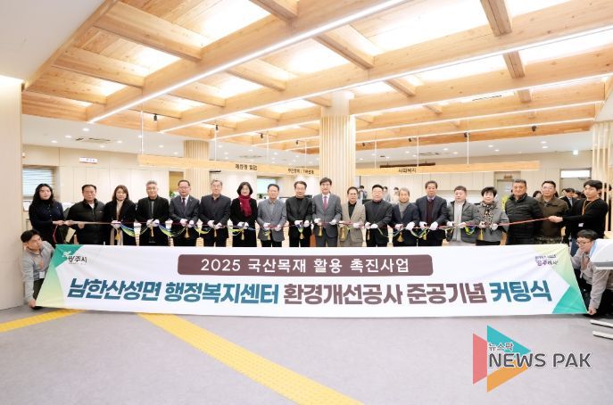 이날 방세환 시장은 “남한산성면 행정복지센터는 이제 행정 기능을 넘어 지역의 역사와 자연이 어우러진 공간으로 거듭났다”며 “앞으로도 국산 목재 활용을 지속적으로 확대해 건강하고 품격 있는 공공 공간을 조성해 나가겠다”고 말했다.