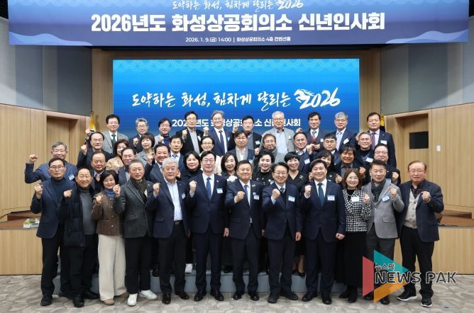 뉴스팍 류은정 기자 | 화성상공회의소가 지난 9일 화성상공회의소 컨벤션홀에서 ‘2026년 신년인사회’를 열고 관내 기업인을 격려했다.