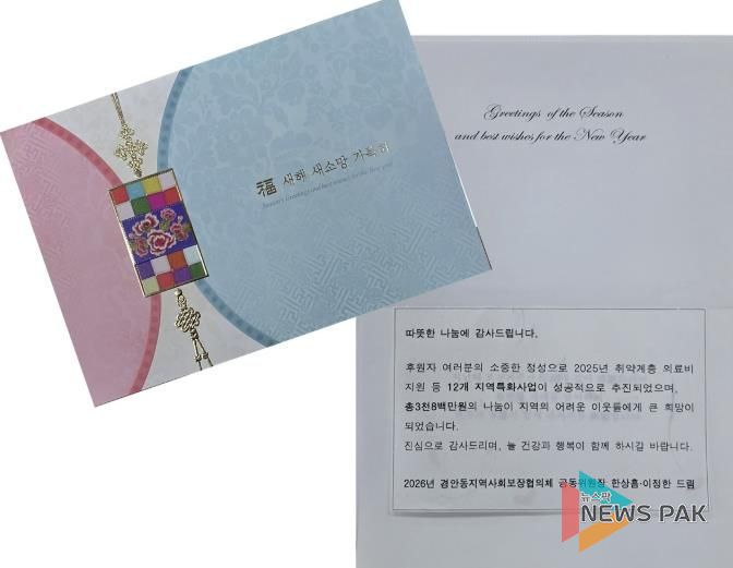 뉴스팍 이화형 기자 | 광주시 경안동 지역사회보장협의체는 2025년 한 해 동안 경안동에 이웃돕기 후원을 이어온 개인 및 단체 후원자 170명을 대상으로 감사 서한을 발송했다고 12일 밝혔다.