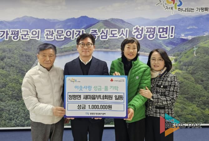 뉴스팍 배상미 기자 | 가평군 청평면 새마을부녀회는 최근 청평면 행정복지센터를 방문해 지역 내 어려운 이웃을 돕기 위한 성금 100만 원을 기탁했다.
