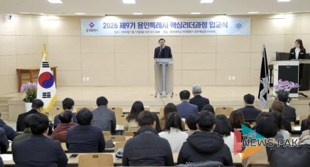 뉴스팍 배상미 기자 | 용인특례시는 12일 처인구 명지대학교 창조관에서 ‘2026 제9기 용인특례시 핵심리더과정’ 입교식을 개최했다고 13일 밝혔다.