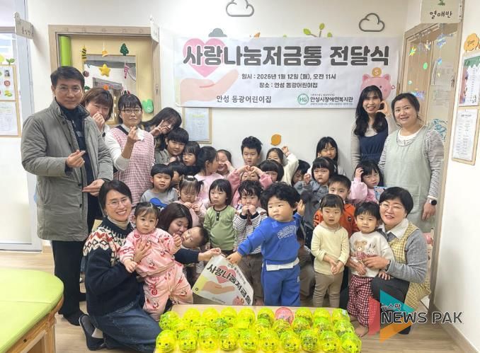 안성 동광어린이집 김영주 원장은 “아이들이 스스로 모은 작은 동전 하나하나에 이웃을 생각하는 따뜻한 마음이 담겨 있다”며 “아이들이 나눔의 기쁨을 느끼고, 그 마음이 지역사회로 이어지길 바란다”고 전했다.