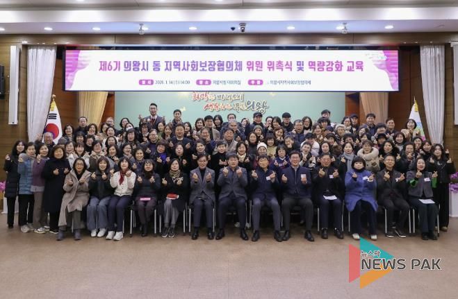 뉴스팍 배상미 기자 | 의왕시는 1월 14일 오후 2시 시청 대회의실에서 제6기 동지역사회보장협의체 위원 위촉식을 개최했다.