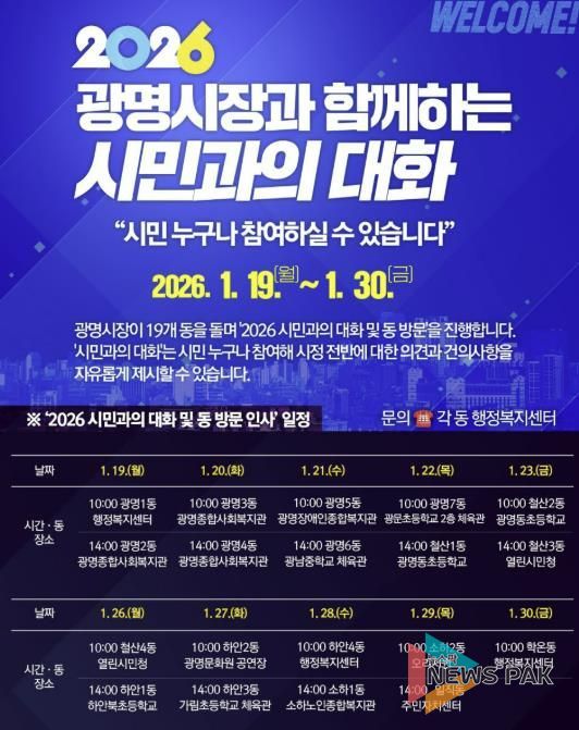 박 시장은 “모든 권력은 시민으로부터 나온다”며 “시민과의 대화를 통해 시민의 목소리를 현장에서 더 가까이 듣고, 이를 광명의 미래를 완성하는 힘으로 이어가겠다”고 밝혔다.