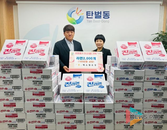 뉴스팍 이화형 기자 | 에스엠조경 임순옥 대표는 19일 광주시 탄벌동 행정복지센터에 지역 내 취약계층의 겨울철 생활 지원을 위한 라면 2천개를 기탁했다.