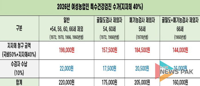 이번 사업은 경기도 건강복지 지원 정책의 하나로, 근골격계 질환과 농약 노출 등에 취약한 여성농어업인을 대상으로 맞춤형 건강검진과 예방 상담을 지원한다.