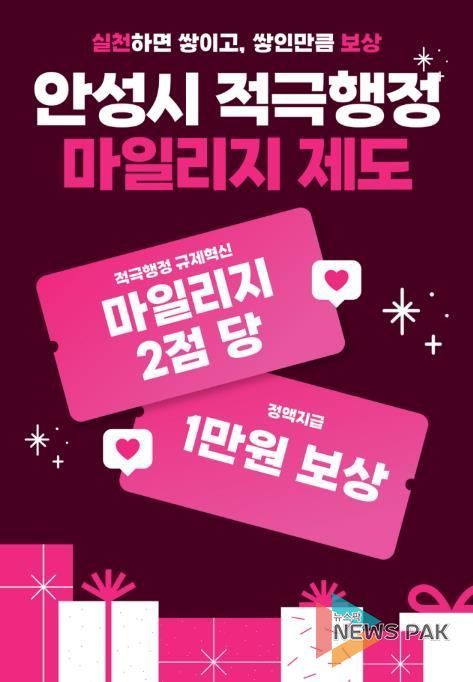 뉴스팍 배상미 기자 | 안성시는 불합리한 규제 개선과 시민 불편 해소를 위한 적극행정 실천 보상을 위해 ‘2026년 적극행정 마일리지 제도’를 운영한다.