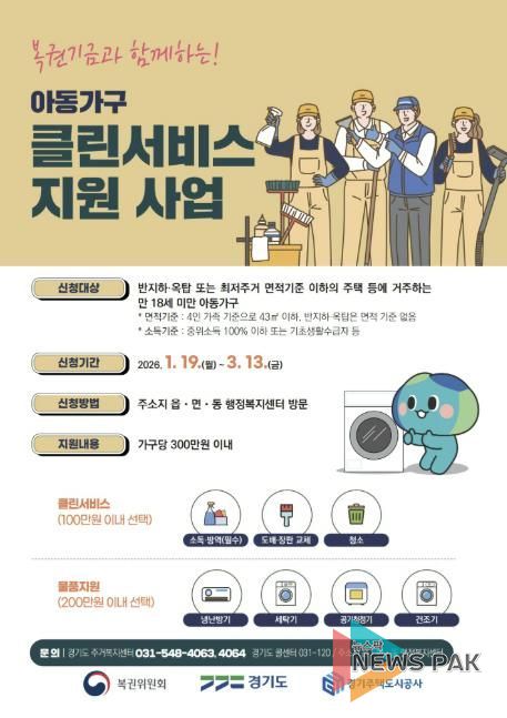 뉴스팍 배상미 기자 | 시흥시는 열악한 주거환경에 처한 아동가구의 주거환경 개선과 생활 안정을 위해 ‘2026년 아동가구 클린서비스 지원 사업’을 본격 추진한다.
