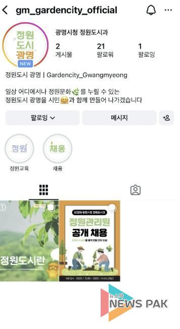뉴스팍 배상미 기자 | 광명시가 ‘정원도시 광명’을 시민 일상에 더 가깝게 전하기 위해 공식 SNS(사회관계망서비스) 채널을 새롭게 개설했다.