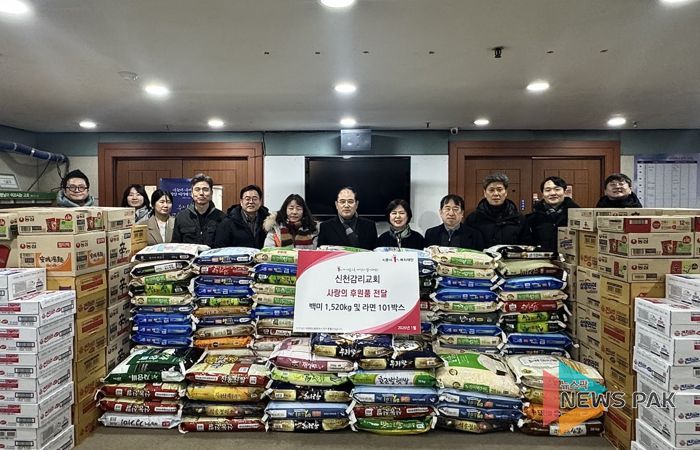 뉴스팍 배상미 기자 | 시흥시 대야동 행정복지센터와 신천동 행정복지센터는 지난 1월 23일 대야동에 소재한 신천감리교회로부터 백미와 라면, 햇반 등 생필품을 전달받았다.