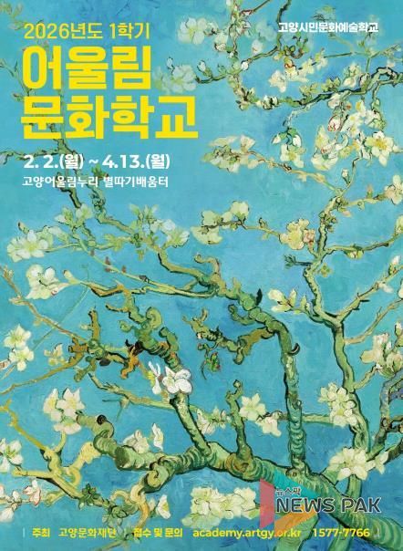 뉴스팍 배상미 기자 | 고양문화재단이 운영하는 고양시민문화예술학교 '2026 어울림문화학교 1학기'가 2월 2일부터 4월 13일까지 진행된다. 이번 학기는 겨울의 끝자락에서 새로운 봄의 계절을 맞이하는 설렘을 담아 총 38개 프로그램 59개 반으로 운영된다.