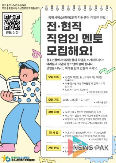 뉴스팍 배상미 기자 | 광명시청소년재단 청소년진로진학지원센터는 관내 청소년들에게 현실적인 직업 정보와 체계적인 진로 설계 기회를 제공하기 위해 ‘2026년 직업인 멘토’를 신규 모집한다고 밝혔다.