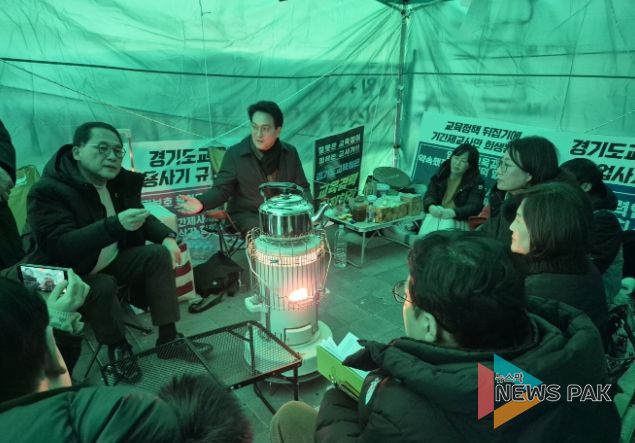 뉴스팍 배상미 기자 | 경기도의회 교육기획위원회 안광률 위원장(더불어민주당, 시흥1)은 27일 오후, 경기도교육청 1층 외부에 설치된 ‘기간제 사서교사 경력 인정 문제 해결 촉구 천막 농성장’을 방문해 교사들의 목소리를 직접 청취하고, 경력 인정 문제에 대한 해법을 논의했다.