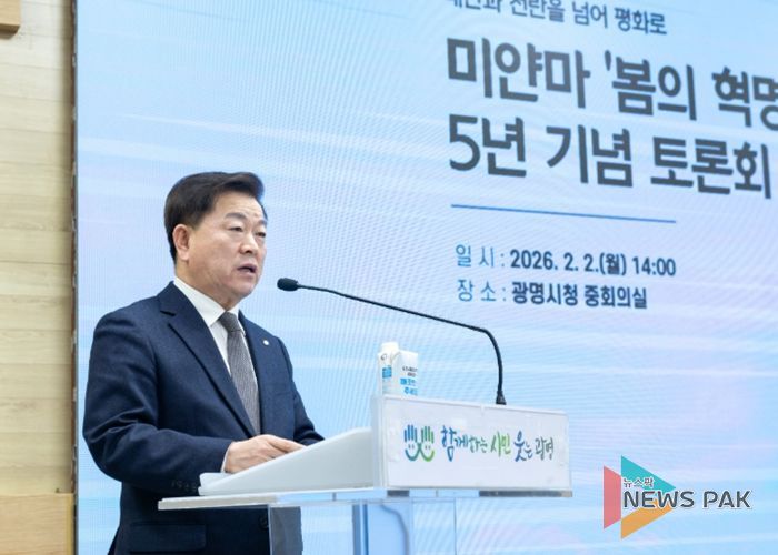 뉴스팍 배상미 기자 | 박승원 광명시장은 미얀마 ‘봄의 혁명’ 5주년을 맞아 민주주의와 인권이라는 보편적 가치를 지키기 위한 국제사회의 연대가 지속돼야 한다고 강조했다.