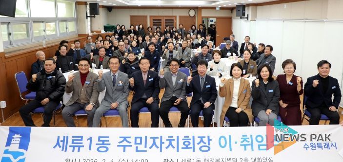 뉴스팍 배상미 기자 | 수원특례시의회 이재식 의장은 2월 4일 오후 2시, 세류1동 행정복지센터 대회의실에서 열린 세류1동 주민자치회장 이·취임식에 참석했다.