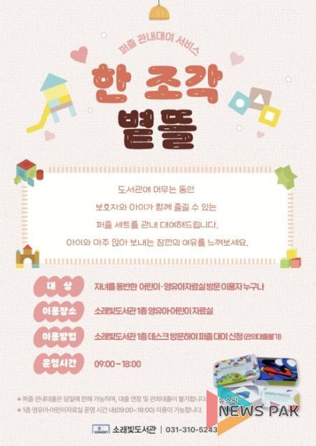 시흥시 소래빛도서관, 관내 퍼즐 대여 서비스 '한 조각 볕뜰' 운영
