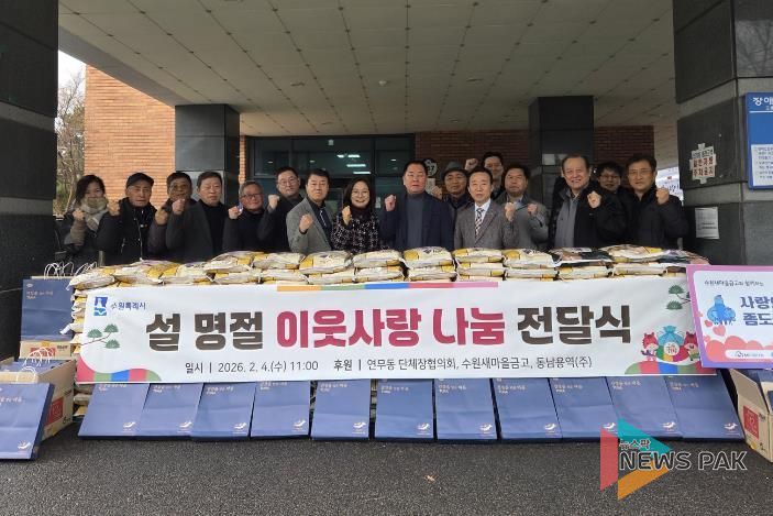 뉴스팍 배상미 기자 | 수원시 장안구 연무동 행정복지센터는 지난 4일, 설 명절을 맞아 관내 어려운 이웃을 위한 나눔 전달식을 개최했다.