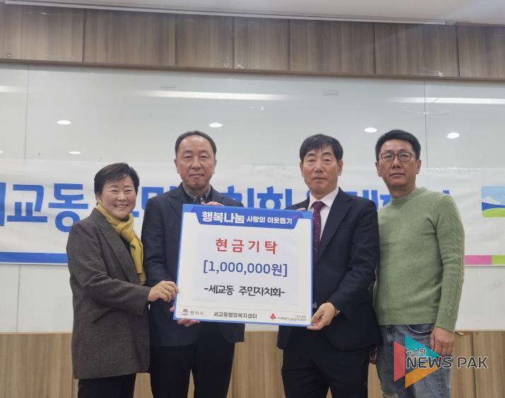 뉴스팍 이소율 기자 | 평택시 세교동 주민자치회는 지난 4일, 세교동 행정복지센터에서 설 명절을 맞이하여 이웃돕기 성금 100만 원을 기부했다.