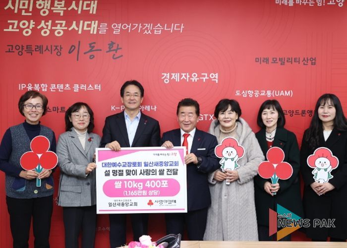 뉴스팍 배상미 기자 | 고양특례시는 지난 4일, 일산서구 주엽동에 소재한 일산새중앙교회로부터 지역 내 취약계층을 위한 쌀 400포를 기부받았다고 밝혔다.