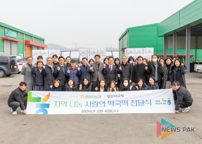 뉴스팍 배상미 기자 | 고양특례시 일산서구는 지난 4일 송포농협과 설 명절맞이 ‘사랑의 떡국떡’ 전달식을 열고, 떡(4kg) 500박스를 전달받았다고 5일 밝혔다.