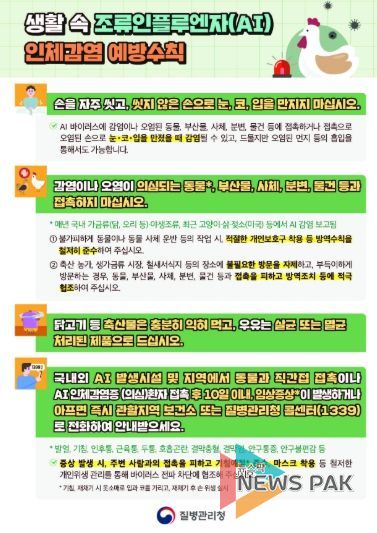 뉴스팍 배상미 기자 | 광명시가 예년보다 앞당겨진 조류인플루엔자 발생에 따라 인체감염 예방을 위해 시민들에게 각별한 주의를 당부했다.